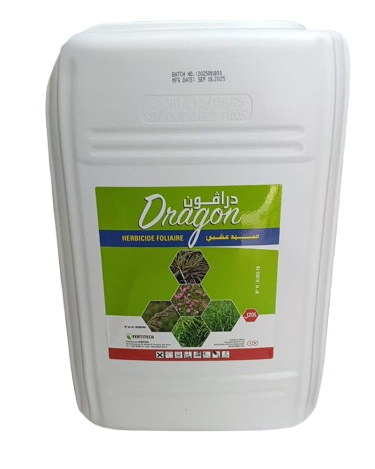 Dragon est un herbicide foliaire non-sélectif à base de glyphosate (360g/l) utilisé pour la lutte contre les graminées et les dicotylédones annuelles et vivaces.