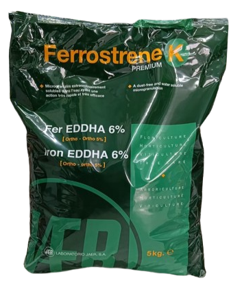 FERROSTRENE PREMIUM est un chélate de fer EDDHA 6% avec 5% Ortho- Ortho. La composante ortho est la plus efficace et la plus stable en cas de pH élevé.
