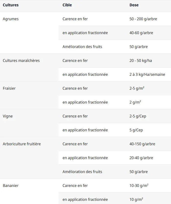 Sequestrene 138Fe permet une correction et prévention des carences en Fer visibles ou cachés sur toutes les cultures, ainsi qu’une amélioration de la qualité de production (calibre, couleur, etc.). Ceci est rendu possible grâce au parfait équilibre entre les formes ortho-ortho et ortho-para.